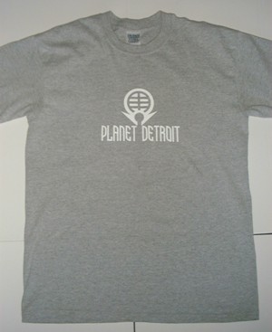 :: PLANET DETROIT - 'Planet Detroit' T-shirt GREY w/WHITE LOGO - size: MEDIUM (PLANET DETROIT)