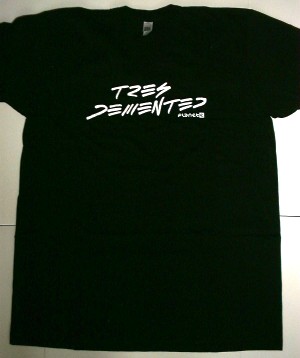 PLANET E - T-shirt 'Tres Demented' BLACK w/WHITE LOGO: Size LARGE